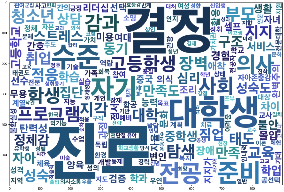 특히 눈에 띄는 부분은 “대학생”과 “중학생”이라는 단어들인데요. 이들이 강조되는 이유는 이 시기의 학생들이 진로 문제로 인해 겪는 심리적 불안과 정서적 부담이 학술적으로도 중요한 주제로 다뤄지고 있기 때문으로 볼 수 있습니다. 동시에 이는 진로결정 과정 속에서 나타나는 내면적 불안과 갈등을 반영하는 표현으로 해석할 수 있습니다.