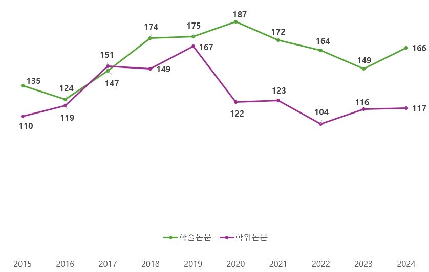 [최근 10년간 국내 학위, 학술 논문 발행 수]