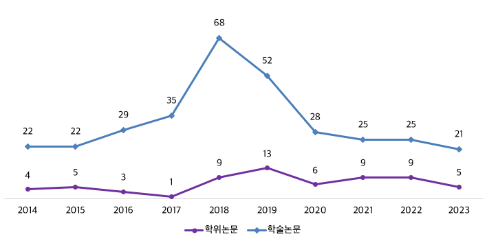 ※ 국내학위, 학술 논문 중 한국어 제목에 “최저임금"이 포함된 논문만을 대상(2024년 제외)